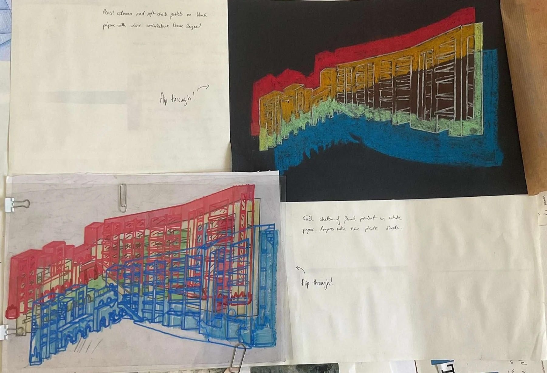 These contrasting states are drawn on three large stacked Perspex sheets with paint markers and alcohol markers.